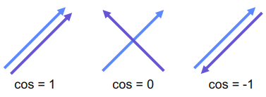 두 벡터의 방향이 다르면 각도가 180도 차이가 나서 유사도는 -1이다.