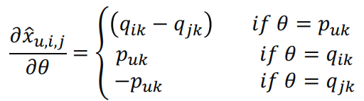 유저가 아이템 i보다 아이템 j를 좋아한다는 정보를 이용해서 MF의 파라미터를 학습한다.