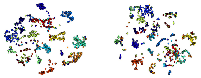 사람이 나눈 기준으로 카테고리 별로 색을 부여해서 보았는데, 왼쪽의 Item2vec이 더 잘 모여있는 것을 확인할 수 있다.