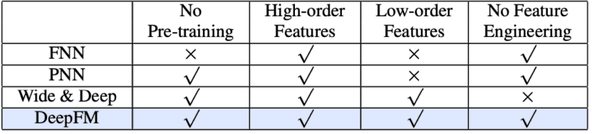 DeepFM이 등장하기 전의 모델들과 비교해보자