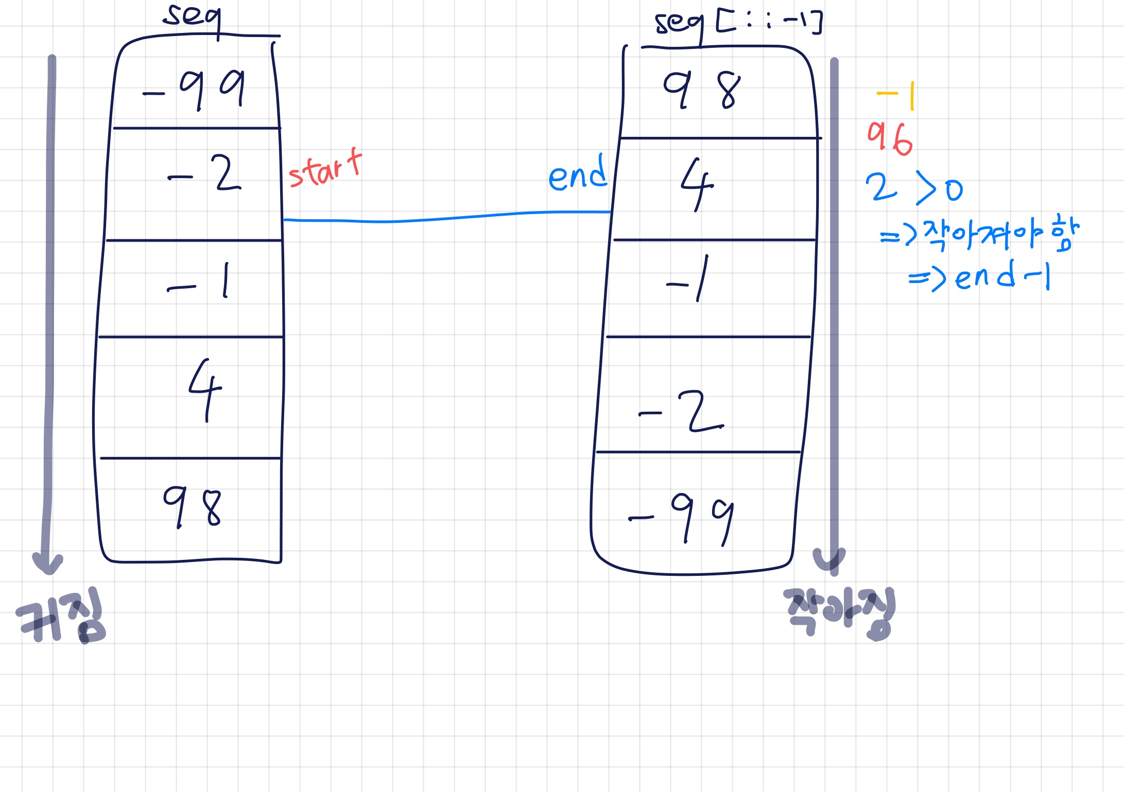- 0보다 크면 0과 가까워져야하니 작아져야 한다. → end - 1
