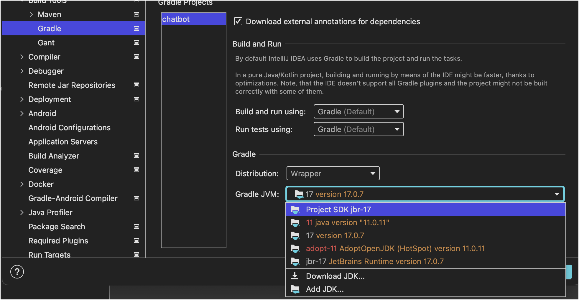 Intellij에서 제공하는 java 17을 사용해도 되지만 openjdk를 사용하고 싶었다..