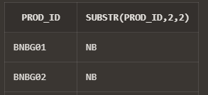- SUBSTR(PROD_ID,3,4) 라면 3번째부터 4개를 가져온다는 뜻이다