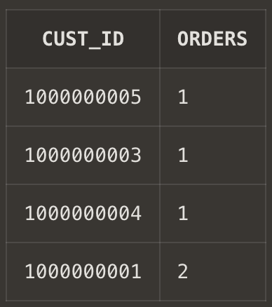 SELECT cust_id, COUNT(*) as orders