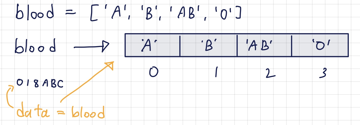 그래서 data=blood라고 하면 blood 주소값을 data주소값에 들어가게 되어서 두 리스트가 같은 주소에 연결된다.