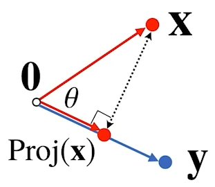 정사영된 벡터의 길이는 x의 벡터의 길이에 cos(x와 y사이의 각도)를 곱하면 된다.