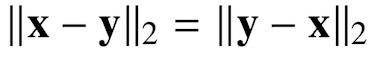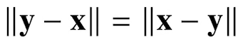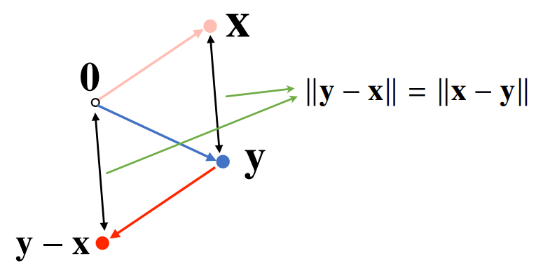 벡터의 뺄셈을 이용하면 된다. 뺄셈을 거꾸로 해도 거리는 같다.