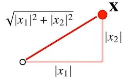 원점에서부터 그 벡터(한 점) 사이의 거리