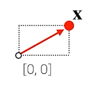 원점에서부터 그 위치(점)까지 연결된 화살표로 표현한다.