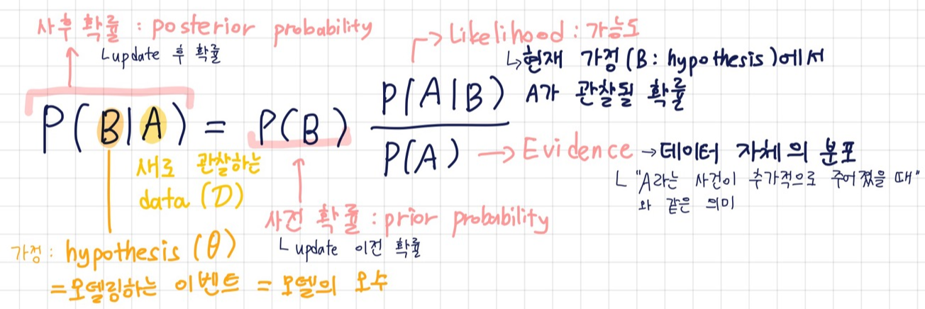 사전확률에서 사후확률을 계산할 때 베이즈정리를 사용해서 update를 한다